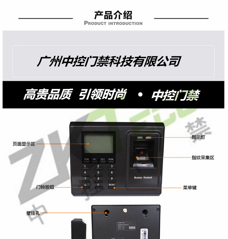 單門門禁系統 zk-f2指紋簽到打卡機